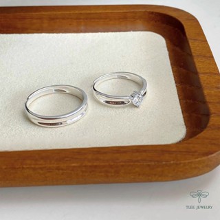 Nhẫn đôi bạc TLEE đeo nam nữ trụ đá viền trơn đơn giản TleeJewelry