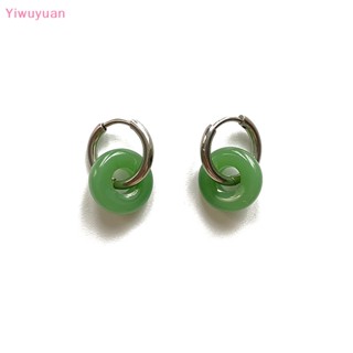 < Yiwuyuan > Khuyên Tai Thả Tròn Bằng Thép Titan Đính Ngọc Bích Phong Cách Vintage Cho Nữ