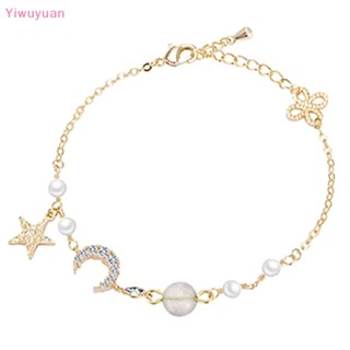 < Yiwuyuan > Vòng Tay Chuỗi Xích Đính Đá Mặt Trăng Ngôi Sao Đơn Giản Thanh Lịch Cho Nữ