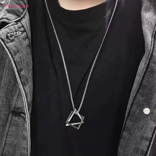 < Yiwuyuan > Dây Chuyền Thép Titan Mặt Tam Giác Vuông Lồng Vào Nhau Phong Cách Đường Phố Mới Cho Nam Và Nữ