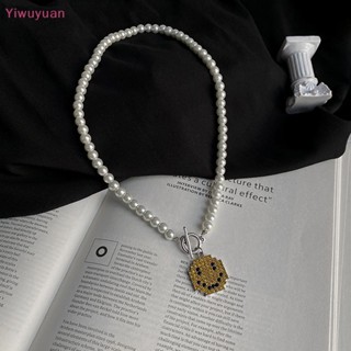 < Yiwuyuan > Vòng cổ Ngọc Trai Mặt Cười Pha Lê Thời Trang Mới Cho Nam Và Nữ