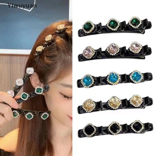 < Yiwuyuan > Kẹp Tóc Mái Đôi Bện Đính Đá Lấp Lánh