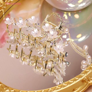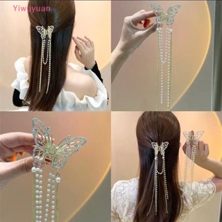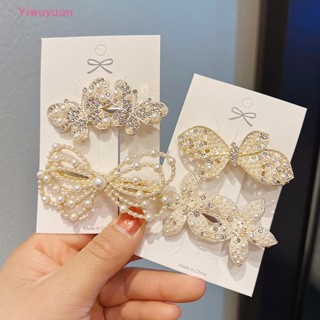 < Yiwuyuan > Kẹp Tóc Đính Đá Ngọc Trai Hình Bướm Tua Rua Bên Hông Đơn Giản Phong Cách Hàn Quốc Cho Nữ Mới