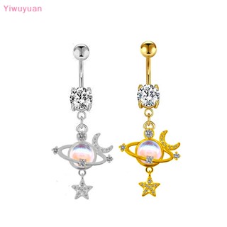< Yiwuyuan > Khuyên Rốn Bằng Thép Không Gỉ Hình Hành Tinh Mặt Trăng Ngôi Sao Sáng Bóng Cho Nữ