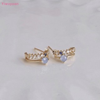 < Yiwuyuan > Bông Tai Dạng Xỏ Hình Mèo Đính Đá Opal Nhân Tạo Lấp Lánh Phong Cách Hàn Quốc Mới Cho Nữ