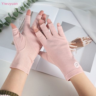 Găng Tay Cotton Hở Ngón Chống Trượt & Tia UV Cho Nữ Mới