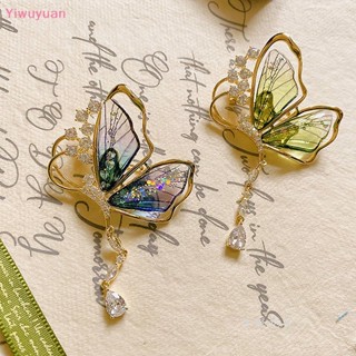 < Yiwuyuan > Trâm Cài Áo Hình Bướm Đôi Pha Lê Xanh Lá Thời Trang Phụ Kiện Hóa Trang Dành Cho