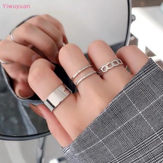 < Yiwuyuan > Nhẫn Hình Vuông / Tròn Mạ Bạc Phong Cách Hàn Quốc Đơn Giản Phổ Biến Dành Cho Nữ