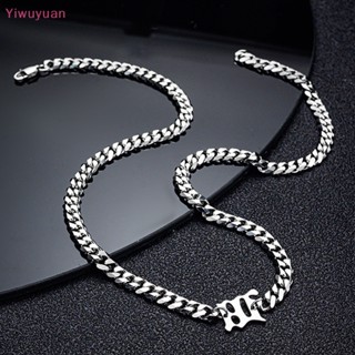 < Yiwuyuan > Vòng cổ Bằng Thép Không Gỉ Mặt Vuông Khắc Chữ A Đến Z Thời Trang Nữ