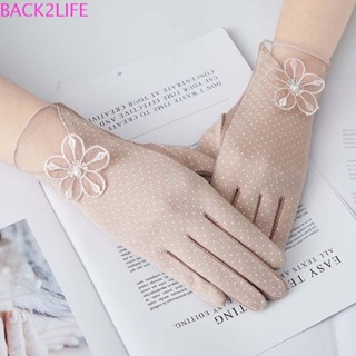 BACK2LIFE Găng Tay Chống Nắng Bằng Lụa Lạnh Co Giãn Thoáng Khí Họa Tiết Chấm Bi Phong Cách Hàn Quốc