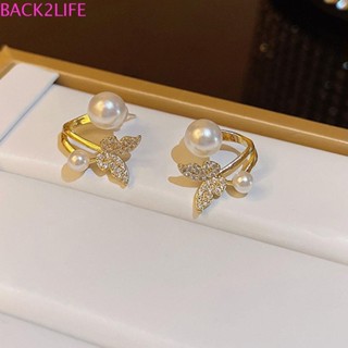 BACK2LIFE Bông Tai Hình Bướm Nhỏ Mạ Điện Đính Kim Cương Thời Trang Cho Nữ