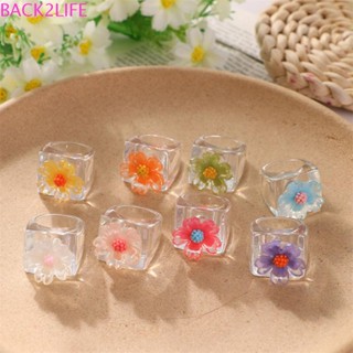BACK2LIFE Nhẫn Acrylic Hình Bông Hoa Phong Cách Vintage Dễ Thương