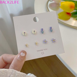 BACK2LIFE Set 4 Cặp Bông Tai Hoa Bằng Hợp Kim Cho Nữ