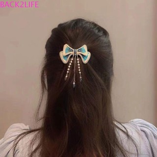 BACK2LIFE Kẹp Tóc Đính Nơ Tua Rua Phong Cách Hàn Quốc Cổ Điển Thời Trang