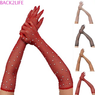 BACK2LIFE Đôi Găng Tay Lưới Hở Ngón Đính Đá Hóa Trang