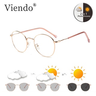 Mắt kính Viendo gọng tròn đổi màu chống ánh sáng xanh và tia UV nhiều màu tùy chọn thời trang cho nam nữ