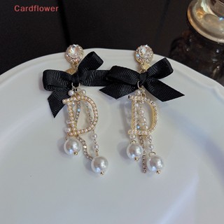 < Cardflower > Bông Tai Dài Tua Rua Nơ Pha Lê Và Ngọc Trai Sáng Bóng Cá Tính S925 Mới