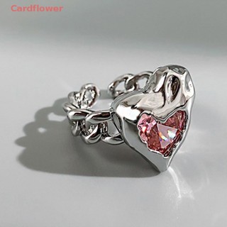 < Cardflower > Nhẫn Đính Đá Pha Lê Hồng Hình Trái Tim Phong Cách Goth Harajuku 90s EMO Y2K Thời Thượng Dành Cho Bạn Nữ Mới