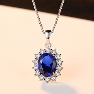 Dây Chuyền Bạc Nữ Cao Cấp Thiết Kế Hình Bông Hoa Đính Đá Màu Xanh Dương Dành Riêng Cho Nữ DB2413 - Bảo Ngọc Jewelry