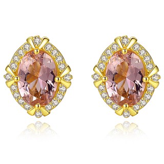 Bông Tai Bạc Ý Đính Đá Màu Nâu Vàng Sang Trọng B-2407-Bảo Ngọc Jewelry