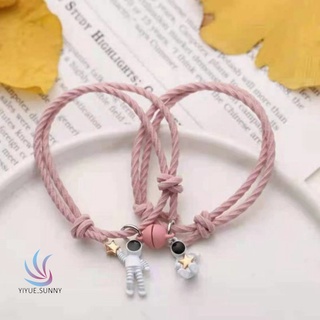 2pcs A Pair Of Magnetic Rubber Strap Bracelets Astronaut Design Lovers Bracelet Attract Magnet Braided Hand Rope Student Cute Spaceman Hair Rope YUE