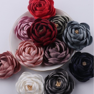 Hoa Cài Áo Sẵn Ghim- Hoa Trà Nhụy Nhiều Màu Chất Lụa Bóng Mờ Kim Tuyến Size Vừa
