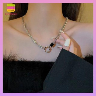 Vòng cổ Bằng Thép Titan Mặt Đá Quý Đen Phong Cách Punk Cho Nữ