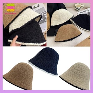 DIACHAVN Mũ Bucket Dệt Kim Phối Ren Màu Tương Phản Thời Trang Mùa Đông Xinh Xắn
