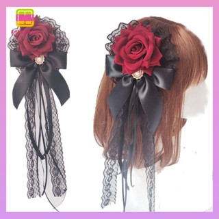 DIACHAVN Kẹp Tóc Hóa Trang Hình Nơ Phối Ren Hoa Hồng Dễ Thương