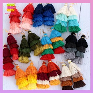 DIACHAVN 1 Đôi Bông Tai Tua Rua Dài Vải Lụa Màu Gradient Phong Cách Boho Cổ Điển Dành Cho Nữ
