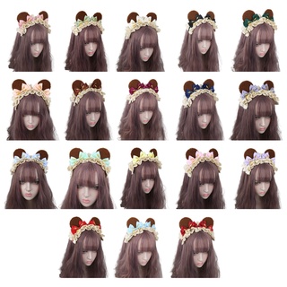 Băng Đô Tai Gấu Bông Nhún Bèo Phối Ren Phong Cách Lolita Nhật Bản