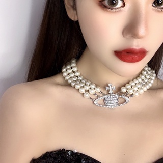 Wmmb Vòng Cổ Choker Nhiều Lớp Đính Hạt Ngọc Trai Và Hành Tinh Đính Đá Phong Cách Baroque Colla