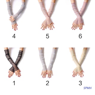 Găng tay lưới dài siêu mỏng phối ren màu trơn lấp lánh bảo vệ chống tia UV cho nữ