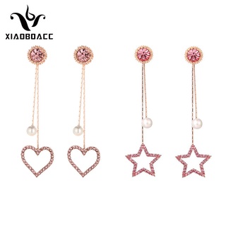 Khuyên tai XIAOBOACC dáng dài tua rua mạ bạc S925 thiết kế trái tim/ ngôi sao thời trang dành cho nữ