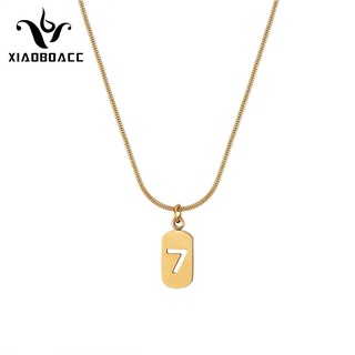 XiaoboACC Vòng Cổ Bằng Thép Titan Mặt Hình Số 7 Thời Trang Hàn Quốc 40cm + 6cm