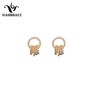 XiaoboACC Bông Tai Mạ Bạc 925 Dáng Dài Đính Đá Zircon Phong Cách Hàn Quốc Thời Trang Cho Nữ