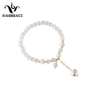 XiaoboACC Vòng Tay Chuỗi Hạt Ngọc Trai Mặt Hình Trái Tim Phong Cách Hàn Quốc Thời Trang Dành Cho Nữ