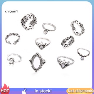 Set 10 Nhẫn Đốt Ngón Tay Đính Đá Opal Phong Cách Retro
