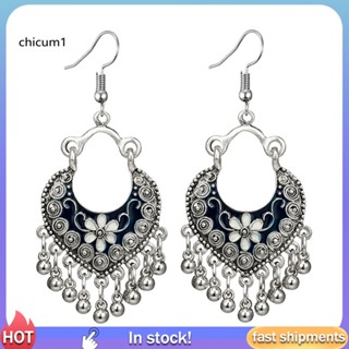 Bông Tai Dạng Móc Tua Rua Tráng Men Hình Hoa Phong Cách Bohemian Thời Trang Cho Nữ