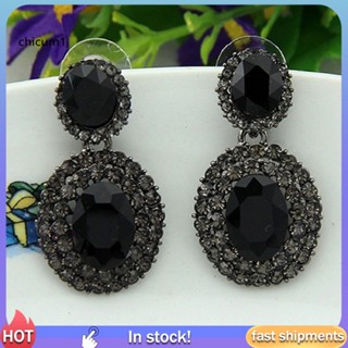 1 Cặp Bông Tai Đính Đá Oval Phong Cách Retro Sang Trọng