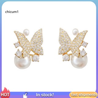 1 Cặp Bông Tai Hình Bướm Đính Đá & Ngọc Trai Giả Kiểu Hàn Quốc Cho Nữ