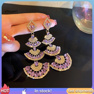 1 Cặp Bông Tai Dáng Dài Hình Quạt Nhiều Lớp Đính Đá Lấp Lánh Thời Trang Cho Nữ