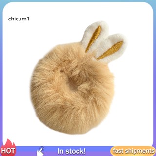 Dây Cột Tóc Co Giãn Bọc Vải Lông Mềm Mại Chống Trượt Hình Tai Thỏ Màu Kẹo Ngọt