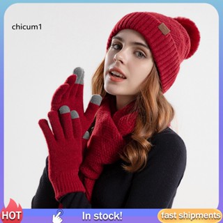 Cc 1 Set Mũ Khăn Quàng Cổ + Găng Tay + Găng Tay Lót Lông Giữ Ấm Mùa Đông Màu Trơn Thoải Mái Dành Cho Nữ