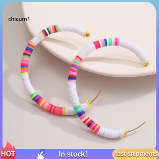 1 Cặp Bông Tai Tròn Bằng Đất Sét Polymer Màu Sắc Cầu Vồng Phong Cách Bohemian Dành Cho