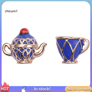 Khuyên Tai Hình Ấm Trà Tráng Men Không Đối Xứng Phong Cách Vintage