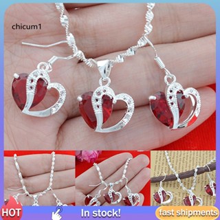 Bộ Vòng cổ + Bông Tai Mạ BạC ĐíNh Đá Đỏ ThờI Trang