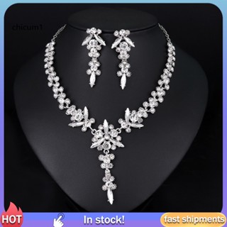 Set 1 Bộ Vòng cổ + Bông Tai Mạ Điện Đính Đá Hình Hoa Có Thể Điều Chỉnh Kích Thước Dành Cho Cô Dâu CC 1