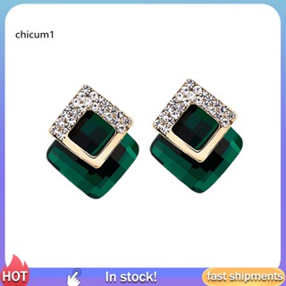Khuyên Tai Nữ Trang Dáng Vuông Đính Đá Pha Lê Sang Trọng
