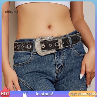 Thắt Lưng Da Giả Nhiều Lỗ Khóa Đính Kim Sa Lấp Lánh Dễ Điều Chỉnh Thời Trang Cho Nữ